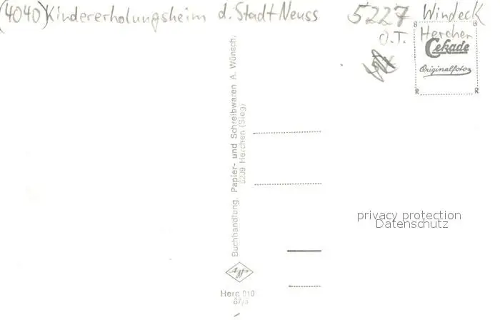 Herchen Kindererholungsheim der Stadt Neuss Herchen postalisch nicht gelaufen 1921-1965 Erhaltung siehe scans [WerneD78] WernPID7