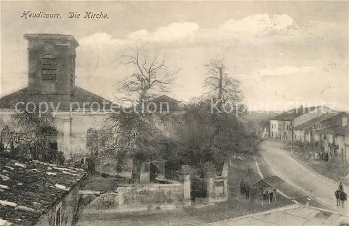Heudicourt_Somme Kirche Heudicourt Somme postalisch gelaufen 1915 Feldpost - Stempel Erhaltung siehe scans [LiesaD40] Feldpost - Stempel LiesID40