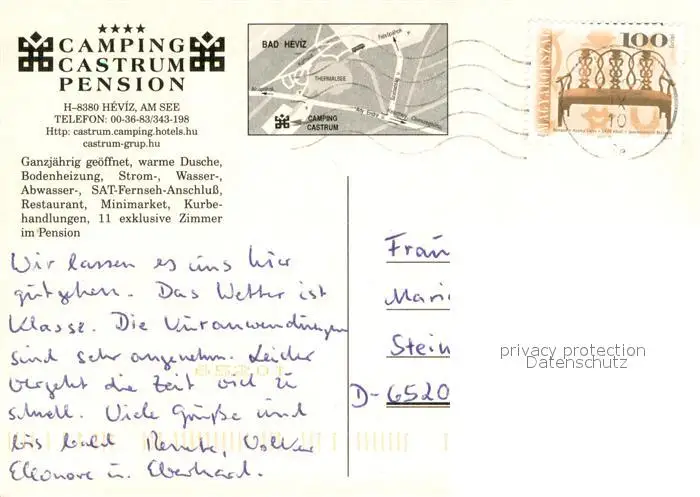Heviz Kurcamping Castrum Pension-Bad Heviz postalisch gelaufen nach 1965 Erhaltung siehe scans [LiesaD40] LiesID40