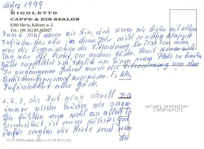 Heviz Rigoletto Caffe Eis Szalon Heviz postalisch nicht gelaufen 1999 Erhaltung siehe scans [FriedD77] Frierer