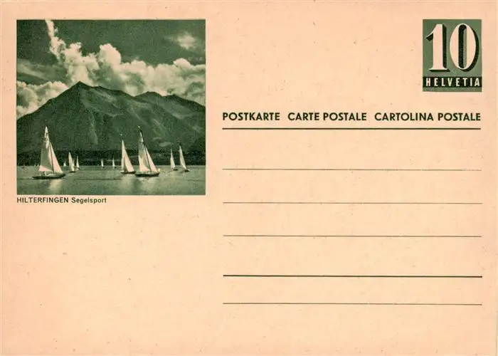 Hilterfingen_Thunersee_BE Segelpartie postalisch nicht gelaufen 1921-1965 Ganzsache (eingedruckte Briefmarke) Erhaltung siehe scans [WerneD78] Ganzsache (eingedruckte Briefmarke) WernPID7