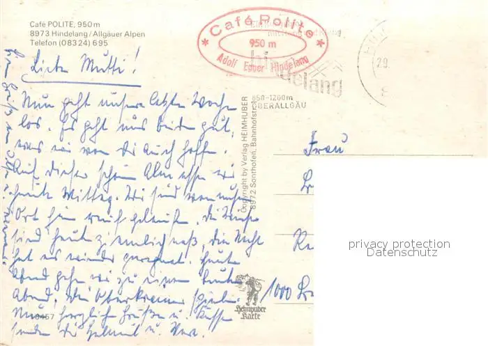 Hindelang Cafe Polite Aussenansicht Hindelang postalisch gelaufen nach 1965 Erhaltung siehe scans [LiesaD40] LiesID40