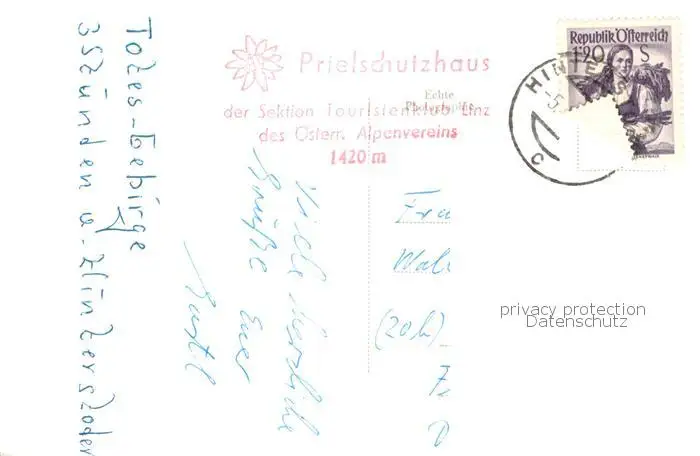 Hinterstoder Prielschutzhaus mit grossem Priel Hinterstoder postalisch gelaufen 1921-1965 Erhaltung siehe scans [WerneD78] WernPID7