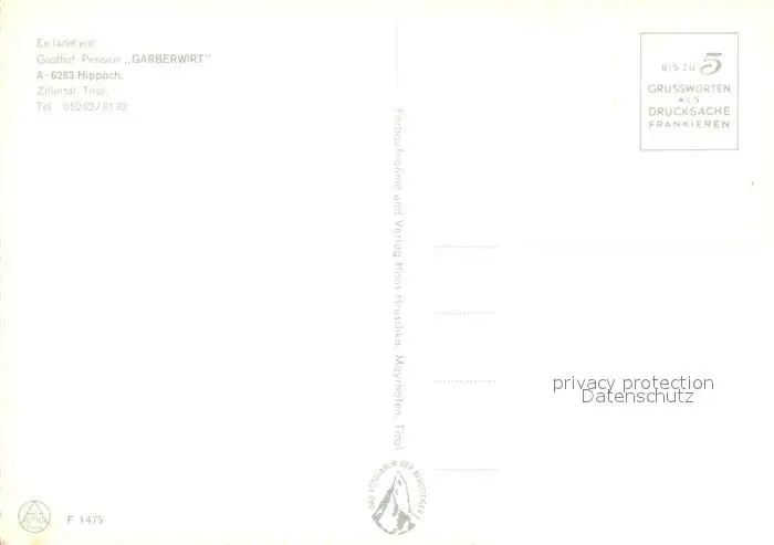 Hippach Gasthof Pension Garberwirt Hippach postalisch nicht gelaufen nach 1965 Erhaltung siehe scans [FriedD77] Frierer