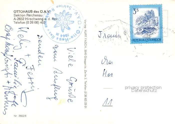 Hirschwang_Rax Ottohaus Hirschwang Rax postalisch gelaufen nach 1965 Erhaltung siehe scans [NatalD47] NataID47