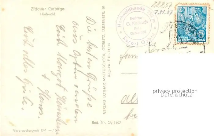 Hochwald_Zittau Turm Hochwald Zittau postalisch gelaufen 1921-1965 Erhaltung siehe scans [LiesaD40] LiesID40
