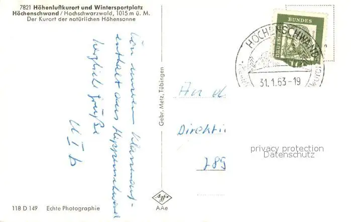 Hoechenschwand Winterpanorama Hoechenschwand postalisch gelaufen 1963 Erhaltung siehe scans [WerneD78] WernPID7