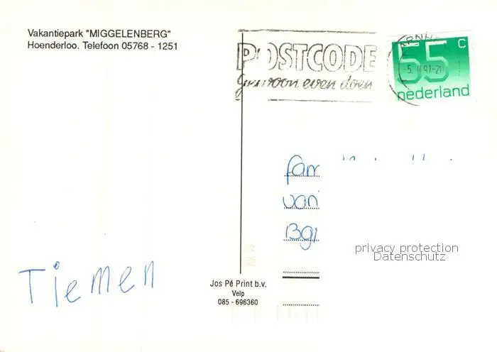 Hoenderloo_NL Vakantiepark Miggelenberg postalisch gelaufen 1991 Erhaltung siehe scans [WerneD78] WernPID7