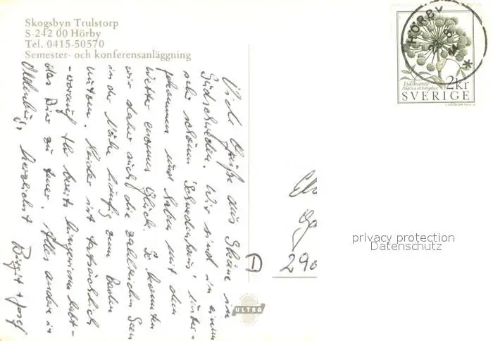 Hoerby Skogsbyn Trulstrop Semester- och konferensanlaeggning Hoerby postalisch gelaufen nach 1965 Erhaltung siehe scans [FriedD77] Frierer