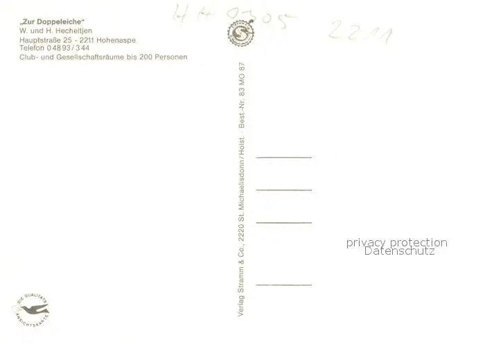 Hohenaspe Kategorie Alte Ansichtskarten Postkarten bx45636 Hohenaspe Zur Doppeleiche Restaurant Hohenaspe postalisch nicht gelaufen nach 1965 Erhaltung siehe scans [LiesaD40]