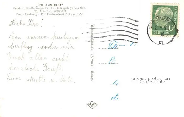 Hollenstedt Kategorie Alte Ansichtskarten Postkarten bx89655 Hollenstedt Hof Appelbeck Gaststaette Hollenstedt postalisch gelaufen 1958 Erhaltung siehe scans [FriedD77]