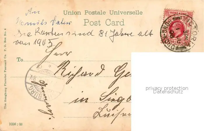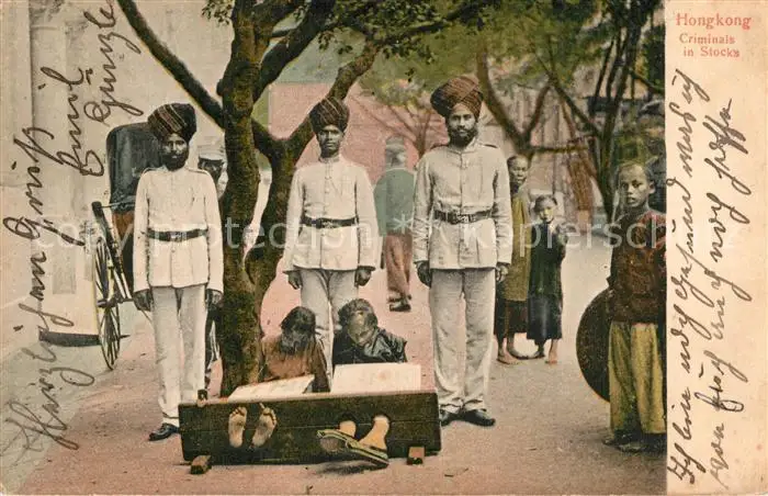 Hongkong Kategorie Alte Ansichtskarten Postkarten bx76324 Hongkong Criminals in Stocks Hongkong postalisch gelaufen 1905 Erhaltung siehe scans [KathaD81]