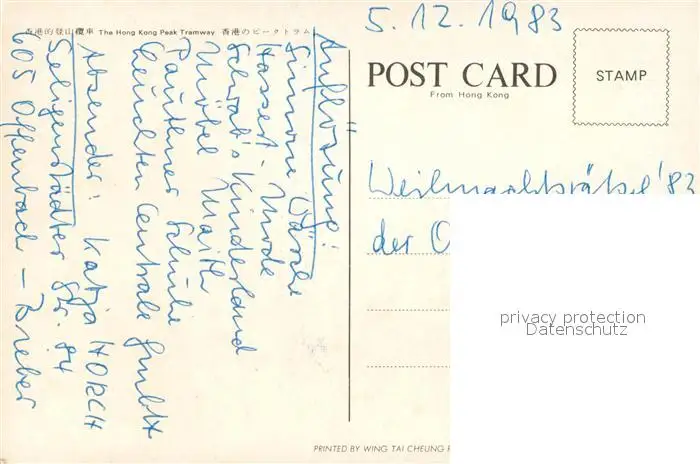 Hongkong Peak Tramway Hongkong postalisch nicht gelaufen 1983 Erhaltung siehe scans [KathaD81] Kathoren