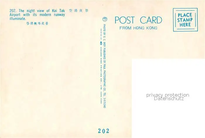 Hongkong_Hong-Kong The night view of Kai Tak Airport postalisch nicht gelaufen nach 1965 Erhaltung siehe scans [WerneD78] WernPID7