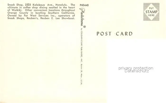 Honolulu Snack Shop postalisch nicht gelaufen nach 1965 Erhaltung siehe scans [FriedD77] Frierer