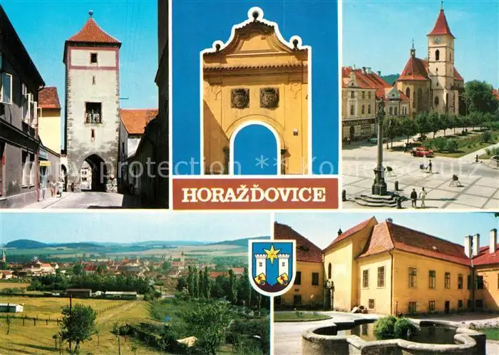 Horazdovice Ortsmotive Tor Kirche Schloss Panorama Horazdovice postalisch nicht gelaufen nach 1965 Erhaltung siehe scans [FriedD77] Frierer