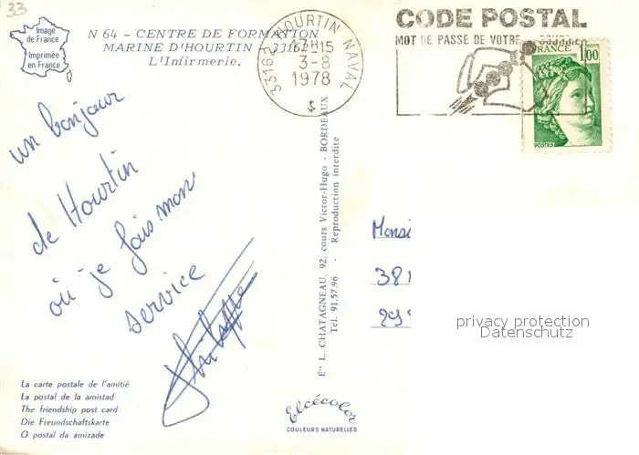 Hourtin Infirmerie Hourtin postalisch gelaufen 1978 Erhaltung siehe scans [FriedD77] Frierer