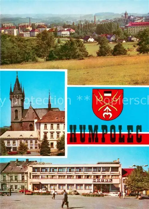 AK / Ansichtskarte Humpolec Stadtpanorama Kirche Hotel Wappen Humpolec