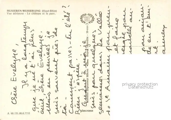 Husseren-Wesserling Vue aerienne Le chateau et le parc Husseren-Wesserling postalisch nicht gelaufen nach 1965 Erhaltung siehe scans [WerneD78] WernPID7