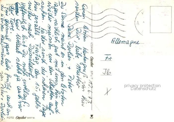 Hvar Fliegeraufnahme Hvar postalisch gelaufen 1973 Erhaltung siehe scans [KathaD81] Kathoren