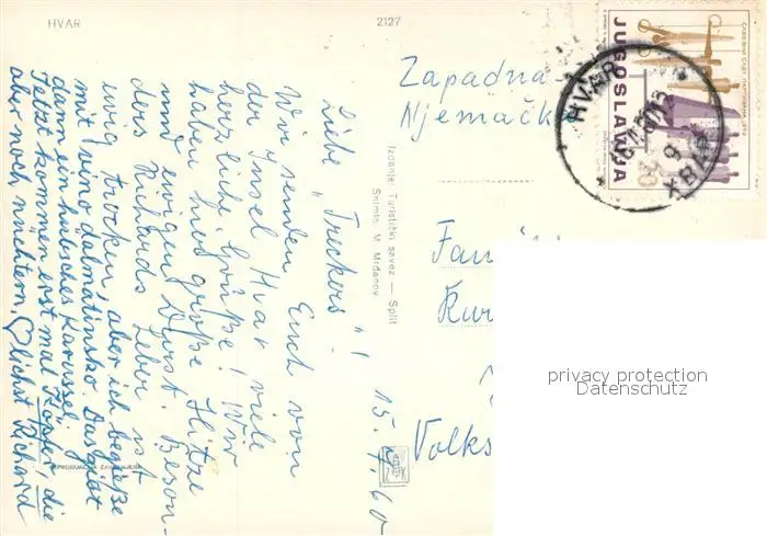 Hvar Hafen Hvar postalisch gelaufen 1960 Erhaltung siehe scans [LiesaD40] LiesID40