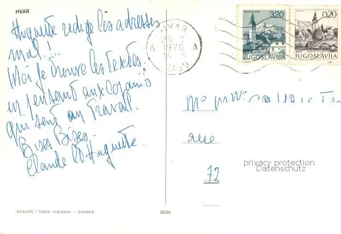 Hvar_Croatia Hafenpartie postalisch gelaufen 1976 Erhaltung siehe scans [WerneD78] WernPID7