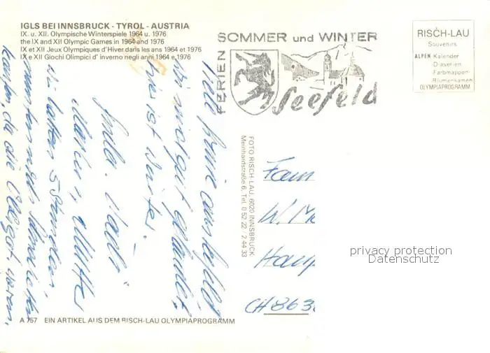 Igls_Tirol Bob Rennrodelbahn Igls_Tirol postalisch gelaufen nach 1965 Erhaltung siehe scans [KathaD81] Kathoren