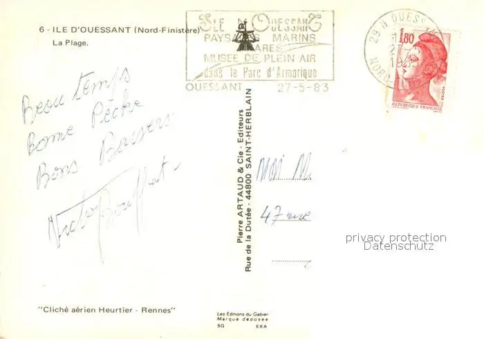 Ile_d_Ouessant La Plage Vue aerienne Ile_d_Ouessant postalisch gelaufen 1985 Erhaltung siehe scans [WerneD78] WernPID7