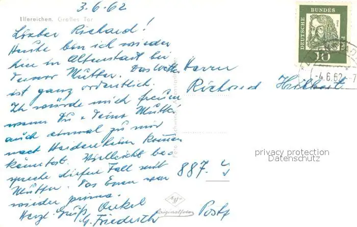 Illereichen Grosses Tor Illereichen postalisch gelaufen 1962 Erhaltung siehe scans [WerneD78] WernPID7