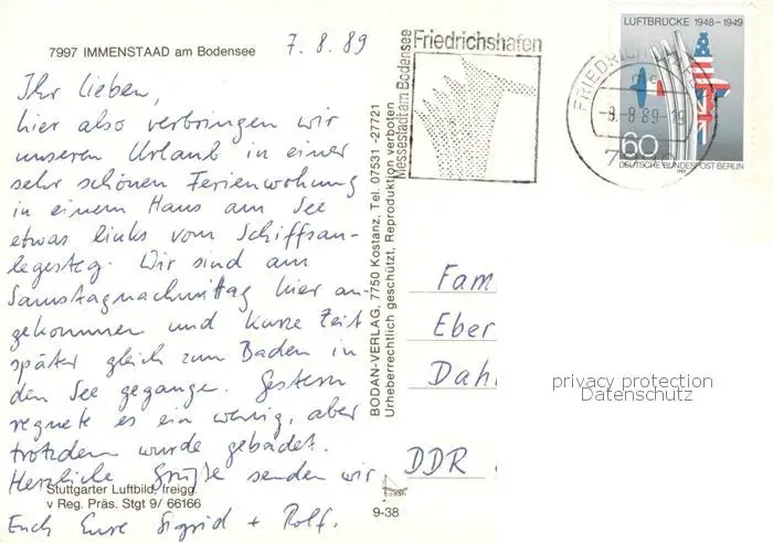 Immenstaad_Bodensee Fliegeraufnahme Immenstaad_Bodensee postalisch gelaufen 1989 Erhaltung siehe scans [WerneD78] WernPID7