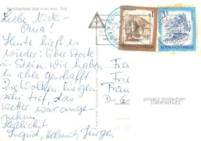 Imst_Tirol Muttekopfhuette Wasserfall Imst_Tirol postalisch gelaufen nach 1965 Erhaltung siehe scans [WerneD78] WernPID7