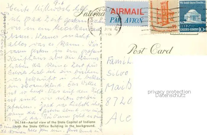 Indianapolis State Capitol and State Office Buildings postalisch gelaufen 1976 Erhaltung siehe scans [WerneD78] WernPID7