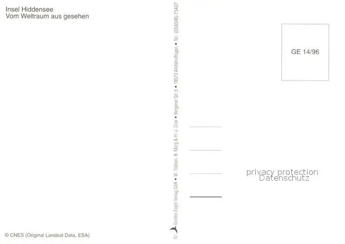 Insel_Hiddensee Satellitbild Insel Hiddensee postalisch nicht gelaufen nach 1965 Erhaltung siehe scans [NatalD47] NataID47