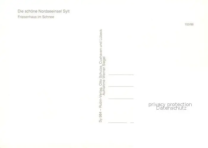 Insel_Sylt Friesenhaus im Schnee Insel_Sylt postalisch nicht gelaufen 1986 Erhaltung siehe scans [FriedD77] Frierer