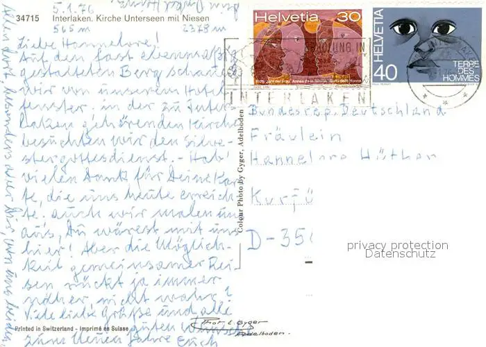 Interlaken_BE Kirche Unterseen Niesen Interlaken_BE postalisch gelaufen 1976 Erhaltung siehe scans [KathaD81] Kathoren