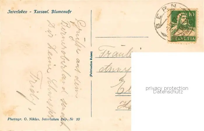 Interlaken_BE Kursaal Blumenuhr Interlaken_BE postalisch gelaufen 1927 Erhaltung siehe scans [FriedD77] Frierer