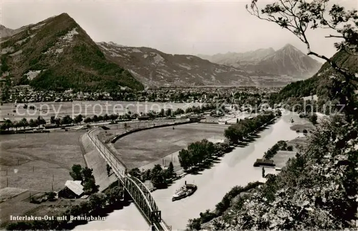 AK / Ansichtskarte Interlaken_BE Panorama mit Braeunigbahn Alpenpanorama Interlaken_BE