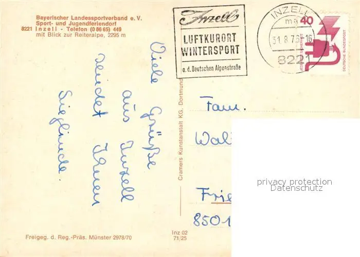 Inzell Fliegeraufnahme Inzell postalisch gelaufen 1975 Erhaltung siehe scans [KathaD81] Kathoren