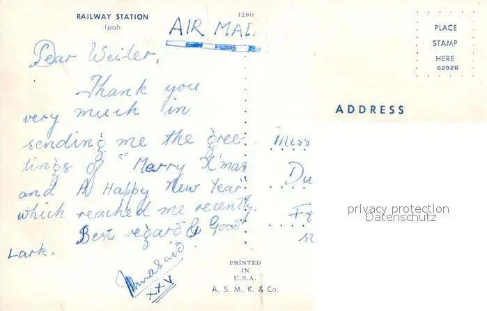 Ipoh Railway Station Ipoh postalisch gelaufen nach 1965 Erhaltung siehe scans [FriedD77] Frierer