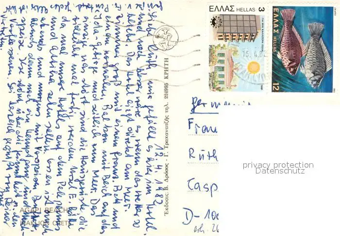 Iraklion_Crete Agapi Beach Iraklion Crete postalisch gelaufen 1982 Erhaltung siehe scans [LiesaD40] LiesID40
