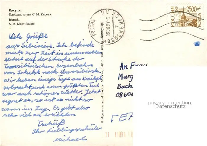 Irkutsk S.M. Kirov Square Irkutsk postalisch gelaufen 1997 Erhaltung siehe scans [PaolaD17] PaolPID1