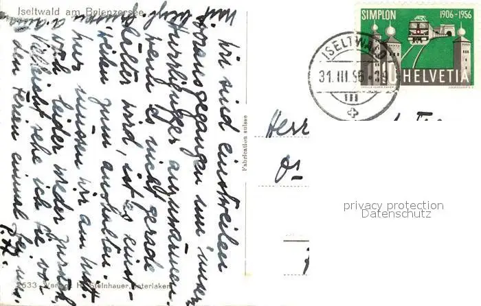 Iseltwald am Brienzersee Iseltwald postalisch gelaufen 1956 Erhaltung siehe scans [WerneD78] WernPID7