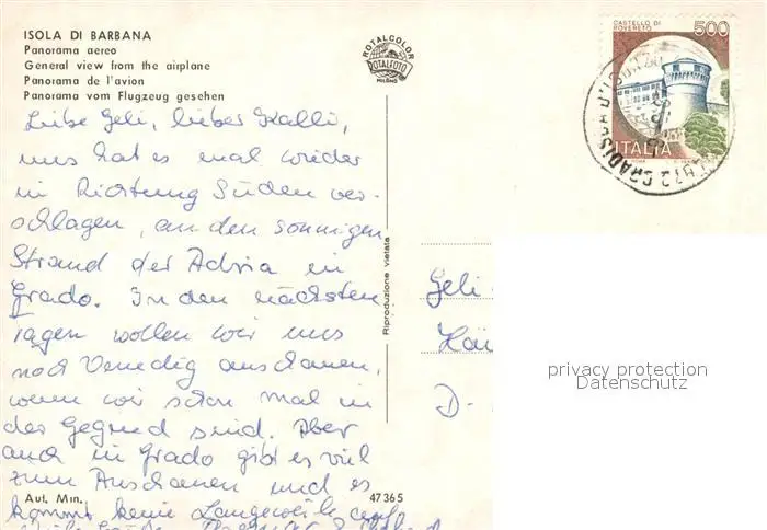 Isola_di_Barbana Panorama aereo Isola_di_Barbana postalisch gelaufen 1987 Erhaltung siehe scans [FriedD77] Frierer