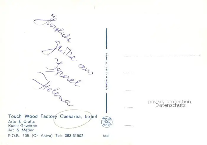 Israel Touch Wood Factory Caesarea Israel postalisch nicht gelaufen nach 1965 Erhaltung siehe scans [FriedD77] Frierer