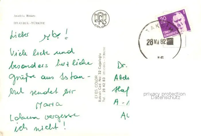 Istanbul_Constantinopel_TK Anadolu Hisari postalisch gelaufen 1982 Erhaltung siehe scans [LiesaD40] LiesID40