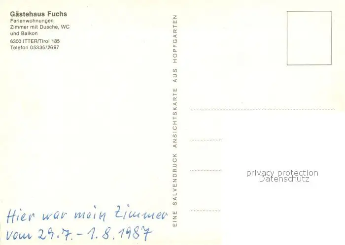 Itter_Tirol Gaestehaus Fuchs Itter Tirol postalisch nicht gelaufen nach 1965 Erhaltung siehe scans [WerneD78] WernPID7