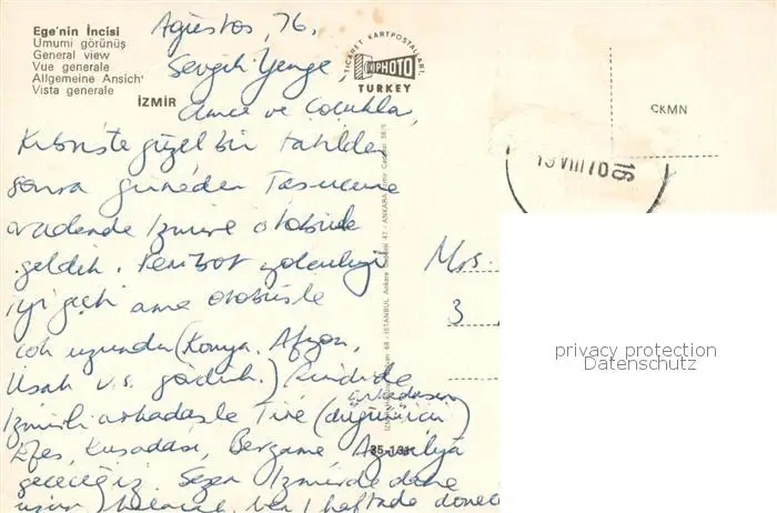 Izmir_TK Fliegeraufnahme postalisch gelaufen 1976 Erhaltung siehe scans [WerneD78] WernPID7