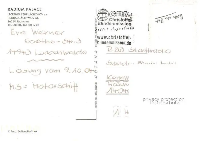 Jachymov Radium Palace Jachymov postalisch gelaufen 2004 Erhaltung siehe scans [FriedD77] Frierer