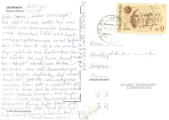 Jachymov Radium Palace Jachymov postalisch gelaufen 2001 Erhaltung siehe scans [WerneD78] WernPID7
