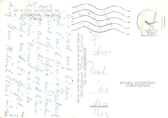 Jaegerthal_67_Bas-Rhin Vue aerienne L'Etang postalisch gelaufen nach 1965 Erhaltung siehe scans [WerneD78] WernPID7
